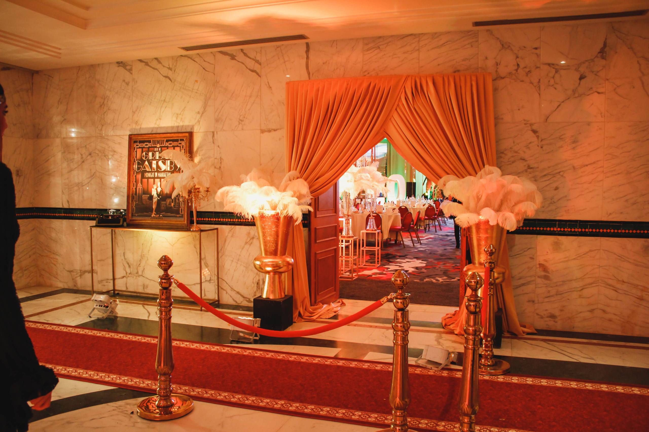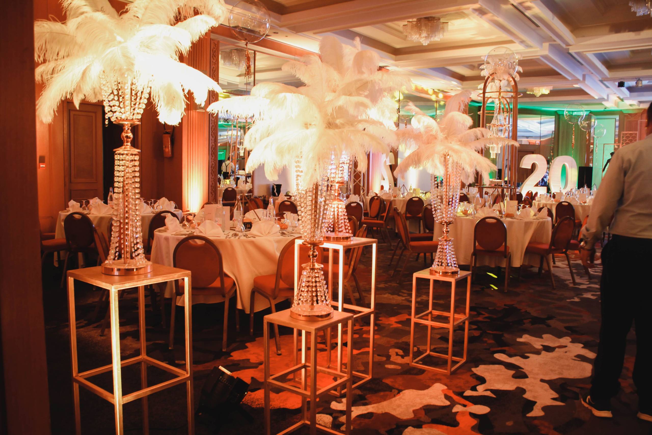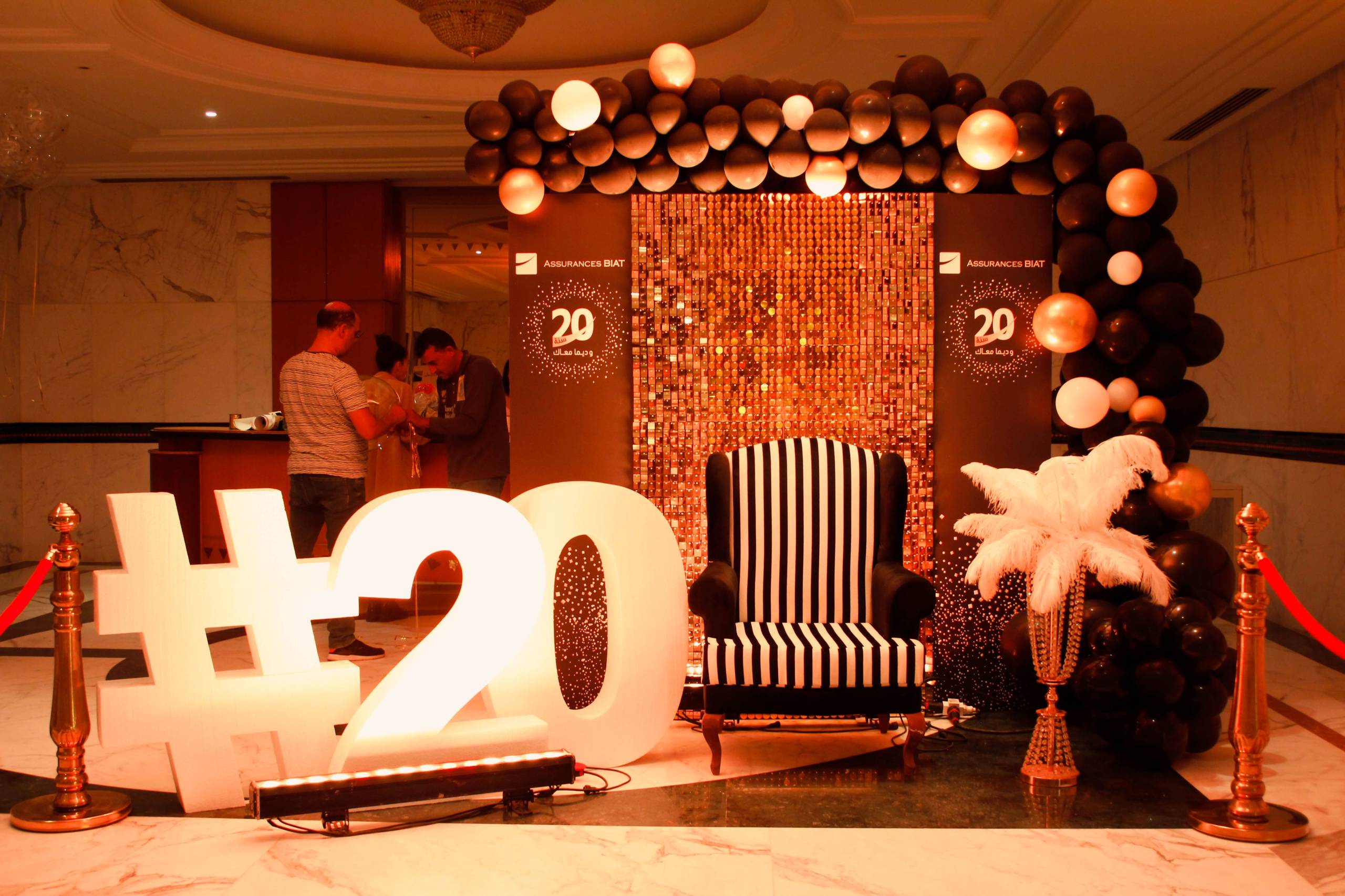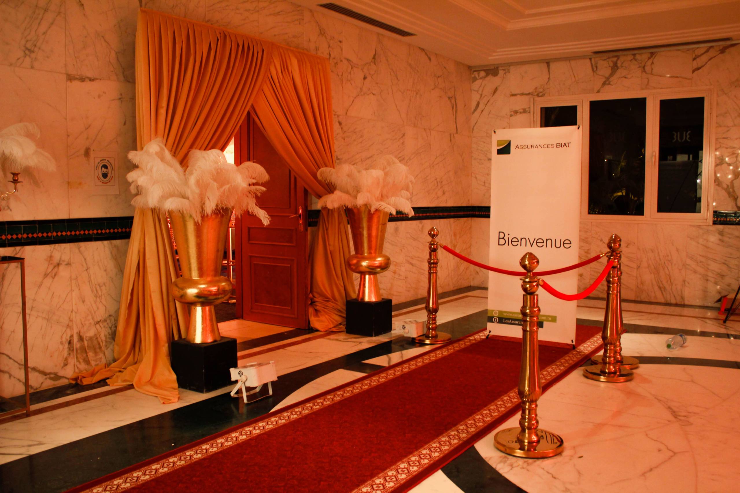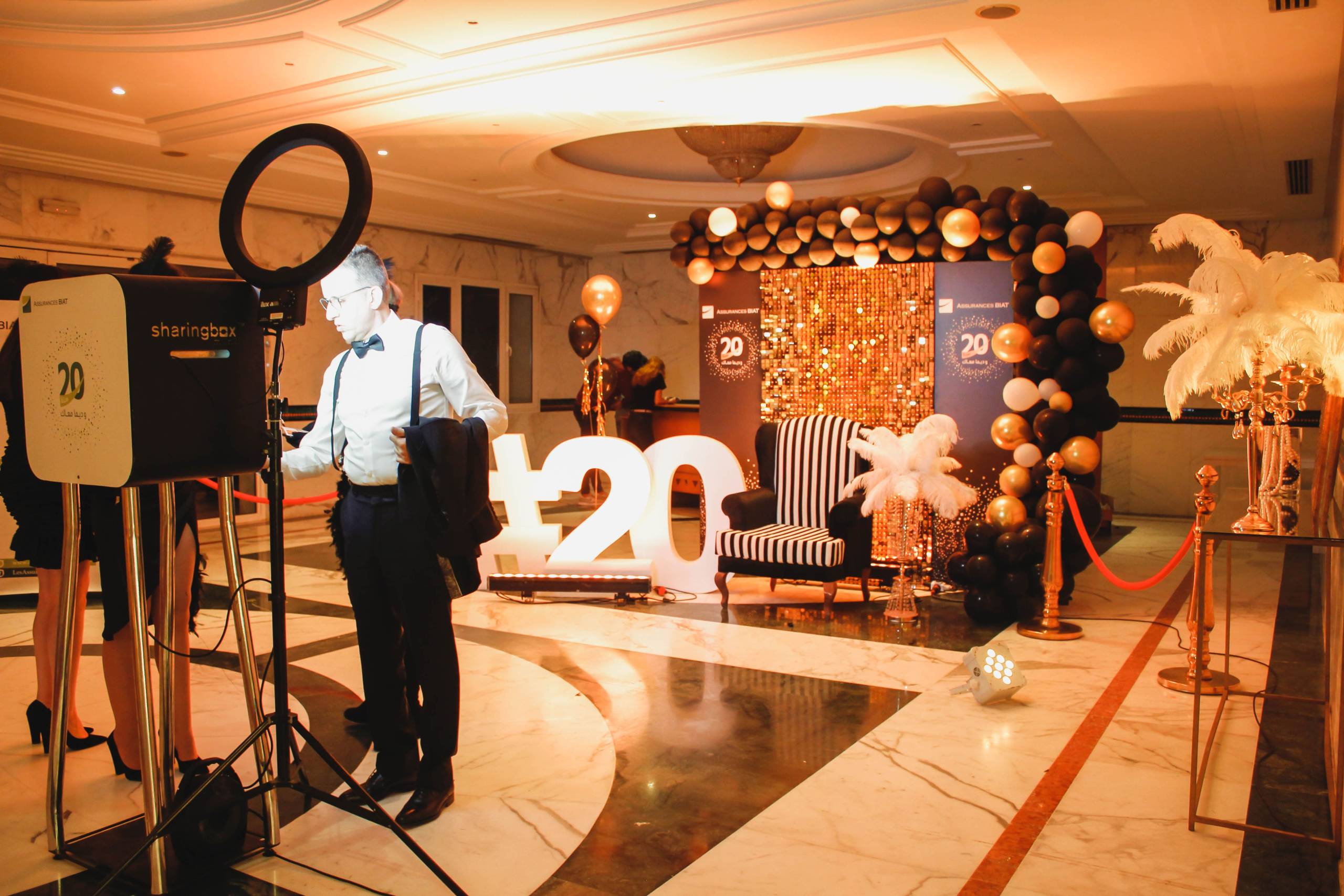 Pour célébrer ses 20 ans, Assurances BIAT a voulu marquer les esprits avec une soirée Gatsby digne des plus grands bals de l’époque. Nous avons entièrement transformé le lieu avec une décoration art déco raffinée, des tables ornées de plumes et de dorures, et un éclairage tamisé pour une ambiance feutrée. Une troupe de danseuses Charleston, un orchestre live et des cocktails signature ont transporté les invités dans un univers élégant et festif. Un événement orchestré dans les moindres détails, du dress code aux animations immersives, pour une célébration mémorable.