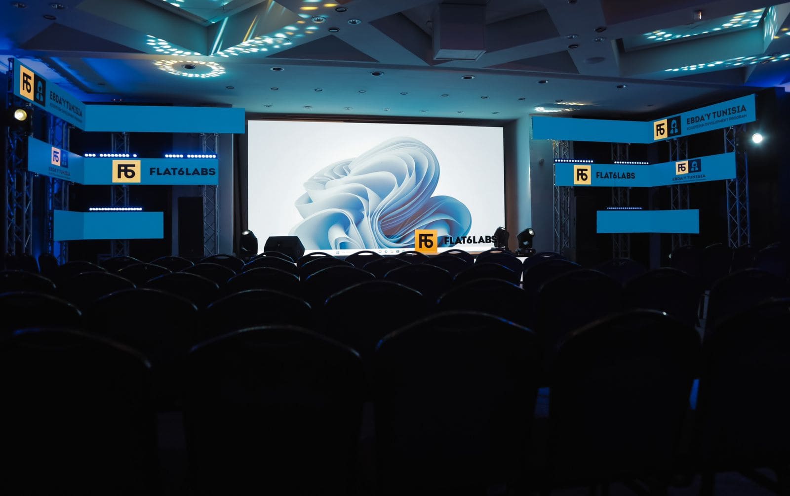 La cérémonie de clôture du programme EBDA’Y, réunissant entrepreneurs, investisseurs et experts de l’écosystème startup. Dès l’accueil, un branding immersif plongeait les participants dans l’univers dynamique de Flat6Labs. La scénographie épurée mais impactante, combinée à un éclairage moderne et des écrans LED, a sublimé les interventions des speakers. Nous avons orchestré toute la logistique, du choix du lieu à la gestion technique, en passant par la captation vidéo et la couverture médiatique. Résultat ? Un événement qui a marqué les esprits et boosté les opportunités pour les startups présentes.