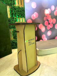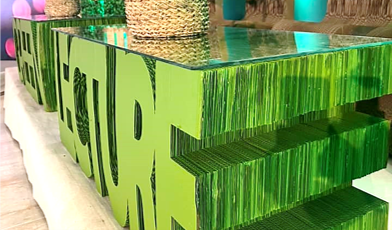 Green Lecture , organisée par Emagine Event Agency pour Heinrich BöllStiftung , illustre notre engagement écoresponsable à travers l’utilisation de matériaux recyclés pour la décoration et le mobilier. Signalétique, cubes lumineux, pupitre, bureau d’accueil et enseigne personnalisée ont été conçus pour allier esthétique et durabilité, reflétant notre expertise dans les événements écoresponsables.
