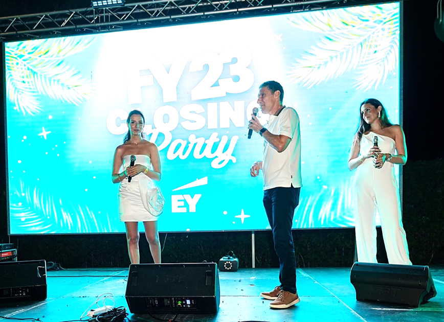 Pour célébrer 1000 collaborateurs, nous avons conçu une expérience estivale immersive au Majorelle Gammarth. Décoration à thème, goodies estivaux distribués par nos hôtesses et une ambiance enflammée avec un live band, DJ set, Théatro Lola et la violoniste Yasmine Azaiez.Un open bar stylisé et un foodcourt varié ont régalé les invités avec des spécialités de Pizzagram, Parad’Ice, Piccola et Le Panier. Une organisation clé en main, alliant scénographie, animations et gastronomie, pour une soirée d’exception.